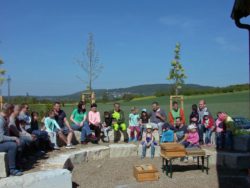 Aus Cadolzburg waren sie angereist. Eine Vater-Kinder-Gruppe hatte sich auf den Weg gemacht, um zwei Tage in der Fränkischen Schweiz mit einer Zeltübernachtung in Moritz zu verbringen und einige Sehenswürdigkeiten den Kindern näher zu bringen. 14 Kinder und 12 Erwachsene – Überraschung: Zwei Frauen waren dabei. Die erste Station war der Kreislehrbienenstand Lützelsdorf. Andreas Dünisch – Diakon der Gemeinde Cadolzburg – hatte die Idee und war Mitorganisator. Burghard Kapuschinski und Wolf-Dietrich Schröber vom Kreisverband Imker Forchheim e.V. begrüßen die Gäste im Steinrondell des KLBS Lü. Jetzt ging es zu den Bienenvölkern, um am Flugloch das Treiben der Bienen zu erläutern. Danach zurück in den Steinkreis. Eine Bienenbeute wurde zusammengesetzt und die Funktion der Einzelteile erläutert. Jetzt kam der Höhepunkt. Burghard Kapuschiski öffnete im Bienenhaus eine Beute und zeigte den überraschten Zuschauern und Kindern einzelne mit Binnen besetze Waben und erklärte viel zum Aufbau und Verhalten der Bienen im Stock. Mit einem Gruß, guten Wünschen und einem kleinen Glas Honig aus der Fränkischen Schweiz für die Kinder zog die Vater-Kinder Gruppe weiter zur Ruine Neideck. Man versicherte uns, dass der Besuch der Höhepunkt sei. Kein Wunder, unsere Bienen waren sehr freundlich, sie haben keinen gestochen.