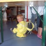 Zum Abschleudern war auch Imkerfamilie Grasser gekommen. Patrick ist Jungimker, hat zwei Bienenvölker im Kreislehrbienenstand stehen und wird von seiner Frau Simone und seinen zwei Kindern Nina-Fee und Leo-Thijs tatkräftig unterstützt. Die Bilder zeigen die Familie beim Honigernten. Sohn Leo-Thijs hat noch kein Interesse und kontrolliert lieber die Sauberkeit am Boden.