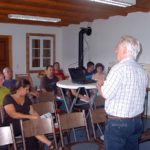 Dann wurde es spannend. Der Referent Dr. Reimund Schuberth war pünktlich angereist. Pensionierte Gymnasiallehrer, Bienenfachwart und langjähriger Imker aus Marktrodach überzeugte mit seinen Ausführungen. Dr. Schuberth war das erste Mal im Kreislehrbienenstand Lützelsdorf, der Kreisverband hatte eine gute Auswahl getroffen. Den Teilnehmern an der Veranstaltung kam das Thema gerade zur rechten Zeit, da viele von ihnen jetzt die Vorbereitungen zum Einwintern angingen. Sie hatten viele Fragen und es entwickelte sich eine rege Diskussion. Vom Abschleudern, Einengung der Völker, Austausch der Waben mit heranziehen der Winterbienen und natürlich die Kontrolle sowie Bekämpfung der Varroramilbe wurde verständlich und wenn notwendig ausführlich dargestellt und viele Alternativen aufgezeigt. Ein gelungener Tag. 18.30 Uhr war der Kreislehrbienenstand Lützelsdorf wieder geschlossen, alle Teilnehmer waren nach Hause gefahren. Die Bienen hatten wieder ihre Ruhe und sagen Dank. Auf ein Wiedersehen.